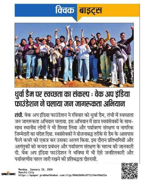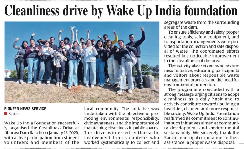 A cleanliness drive conducted by the Wake Up India Foundation at Dhurwa Dam in Ranchi has brought to light the growing problem of poor civic sense and unchecked littering at public and tourist locations.