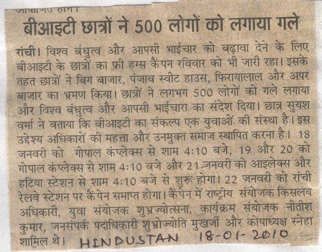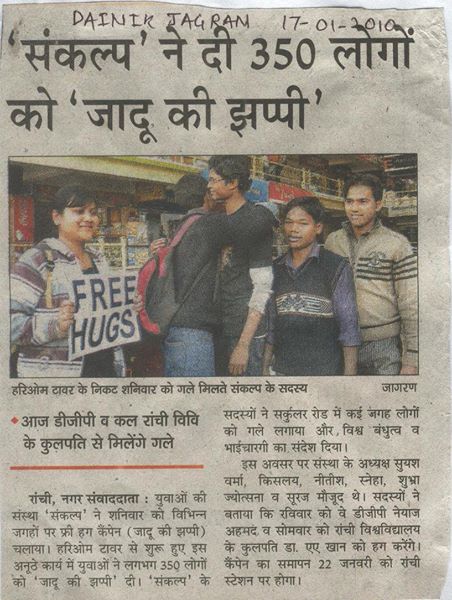 Held at key public locations in Ranchi, the campaign sought to create a ripple effect of positivity. In a world often divided by differences, this initiative encouraged people to embrace unity over division. Passersby hesitated at first but soon joined in, experiencing the profound emotional impact of a simple hug.